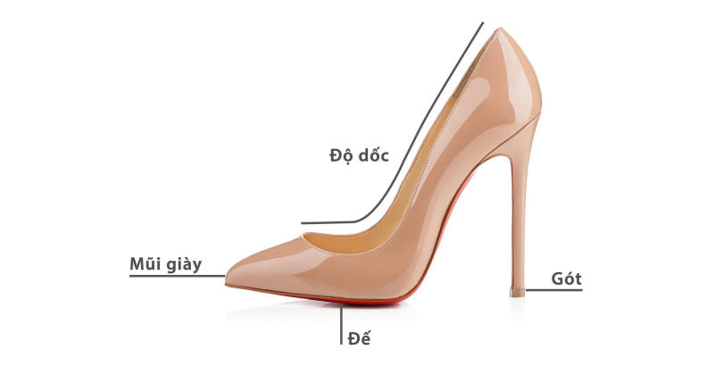 The design of high heels consists of 4 separate parts. Each part of the high heel will take on its own functions to maximize the strength of the shoe in protecting your feet and supporting your feet.