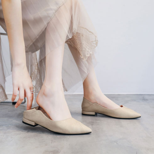 Cream-colored slingback shoes look well with a variety of outfits, exuding a fashionable and sophisticated attractiveness similar to modern metropolitan girls.