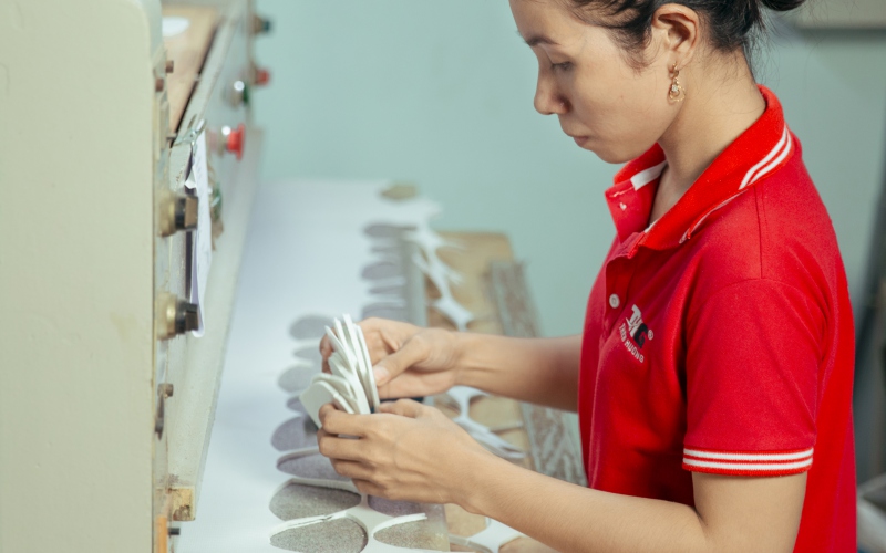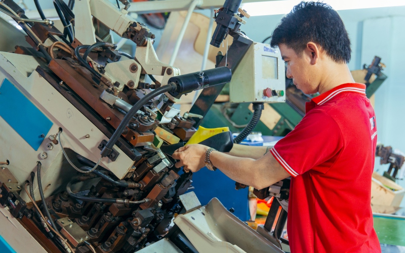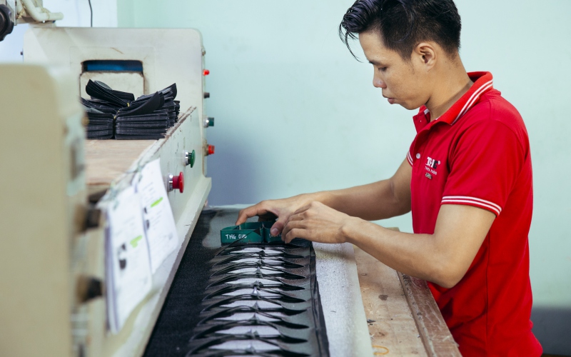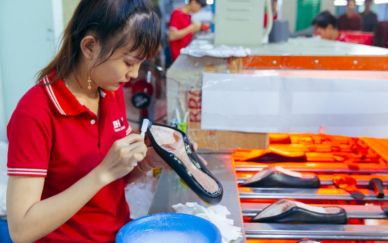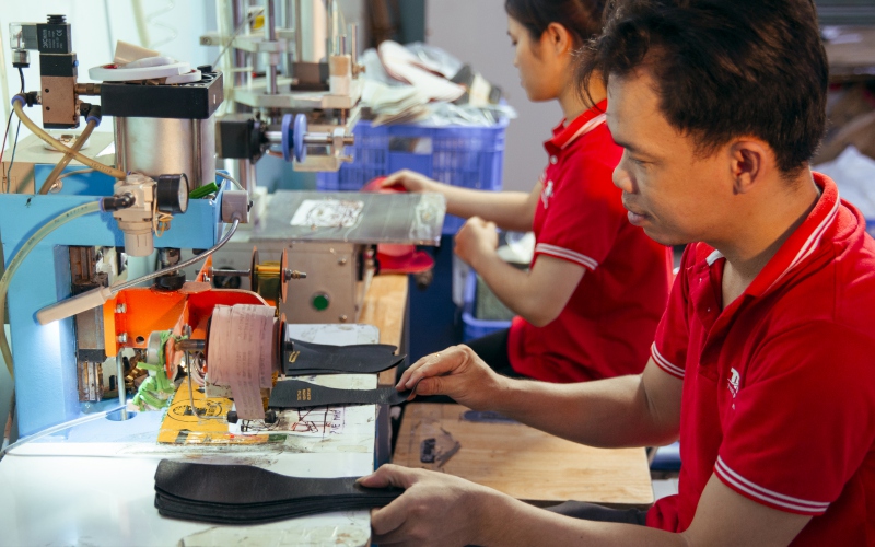 To produce good quality shoes, it must go through extremely meticulous production stages such as: design, creating sample forms, choosing materials, cutting, sewing, making soles, final assembly, quality control...